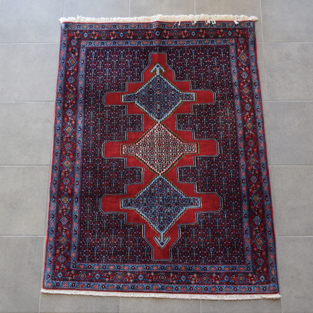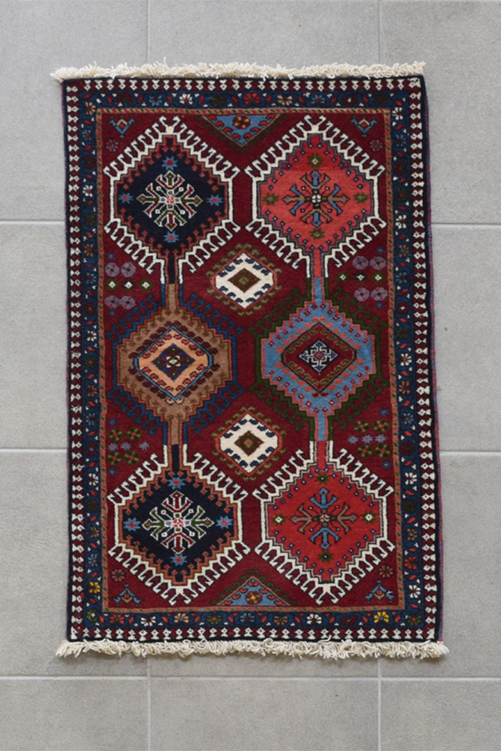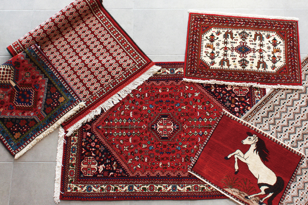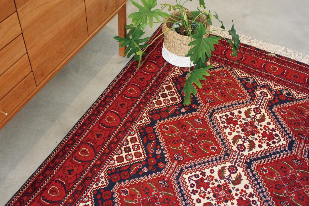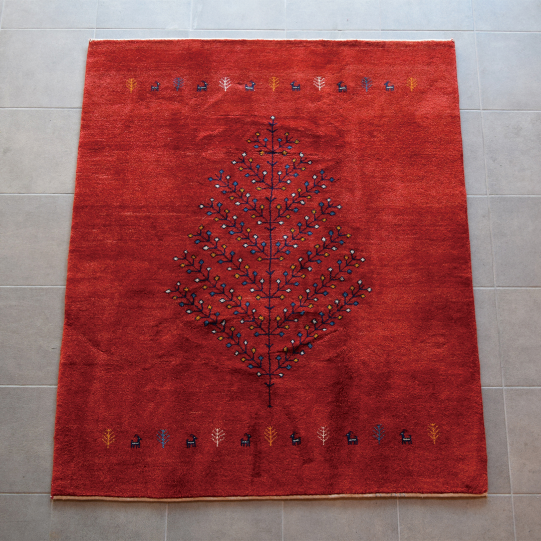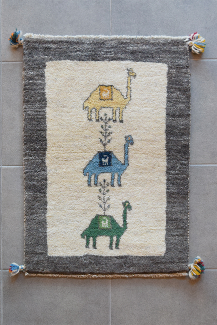 上の画像は約30~40年ほど前に織られ、実際に現地で使用されていたオールドギャッベ。これらのオールドギャッベが現存することが、なによりもギャッベの耐久性を証明しています。へたりなどはなく、堅牢な作りの手織り絨毯は使い込むことで、艶やかで味わい深くなっていきます。