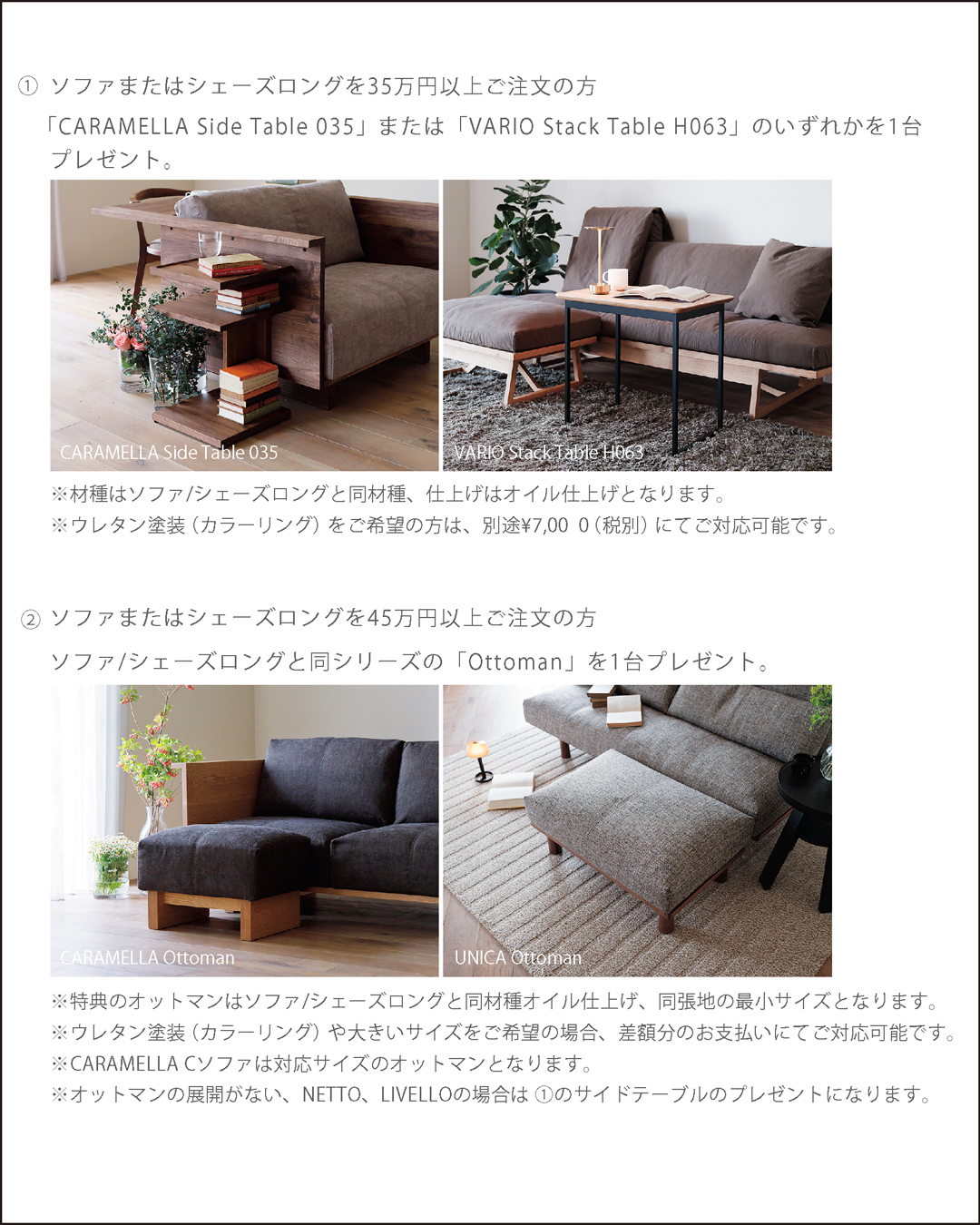 2. ソファ45万円以上ご注文で同シリーズの「Ottoman」を1台プレゼント