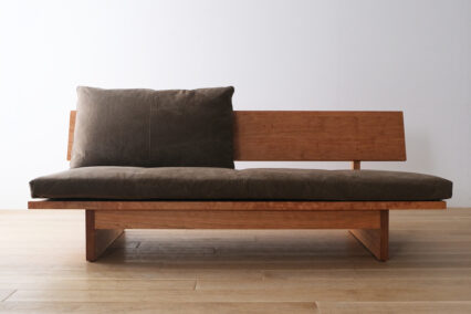 上質な無垢材を使用した、シンプルで直線的デザインのフレックスウッドソファ。ウッドソファはどの角度から見ても木質感たっぷり。温かく落ち着いたリビング空間を演出します。