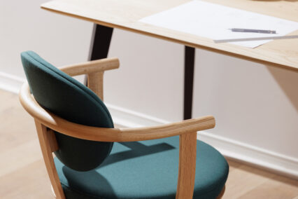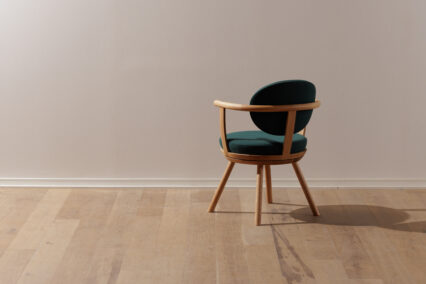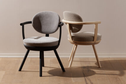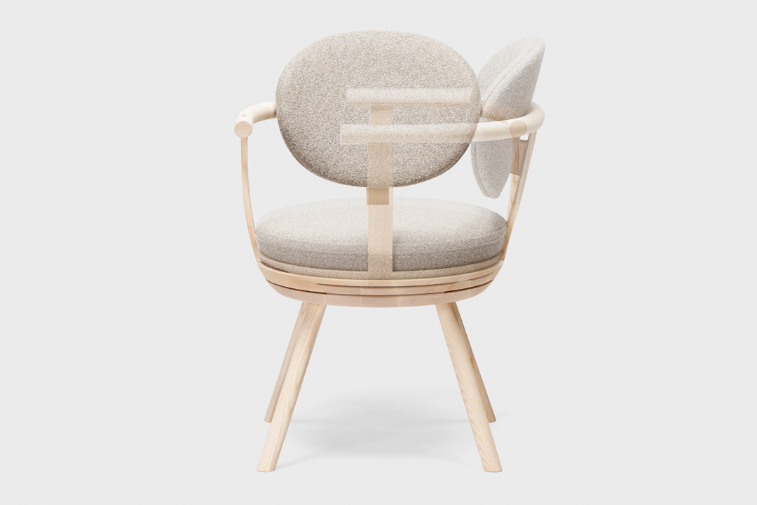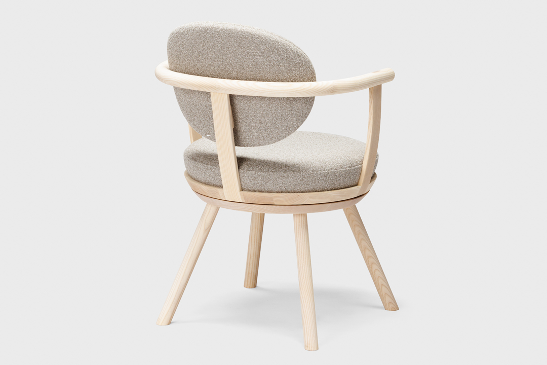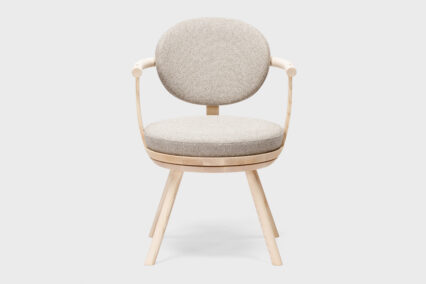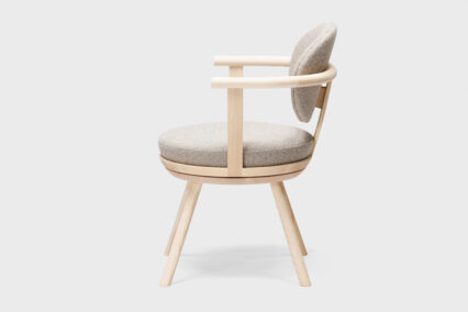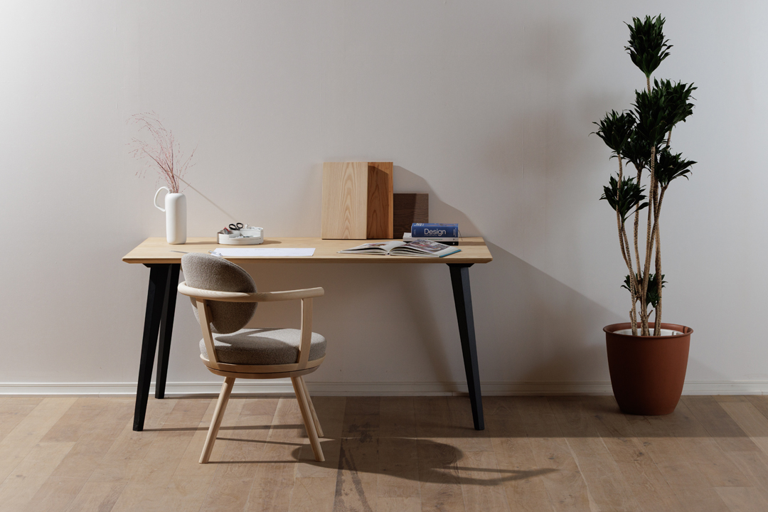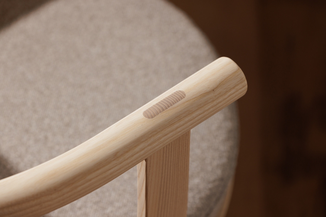 プリミティブな丸棒のアームと脚に、シャープな印象を与える束と座枠を組み合わせたフレームは、程よい重厚感とクラシカルな印象を生み出し、穏やかで落ち着いた存在感を演出します。