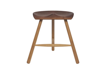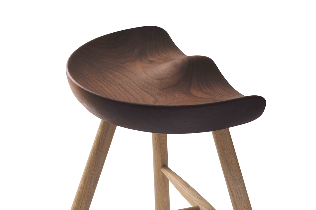 ウォールナットの無垢材を削りだし、お尻にフィットする形を作り出しています。靴職人が長時間の使用でも快適に座れるようにと、お尻の形にあわせて座面を削ったことから生まれたシューメーカーチェア。現在でも受け継がれ、一つひとつハンドメイドで作られています。