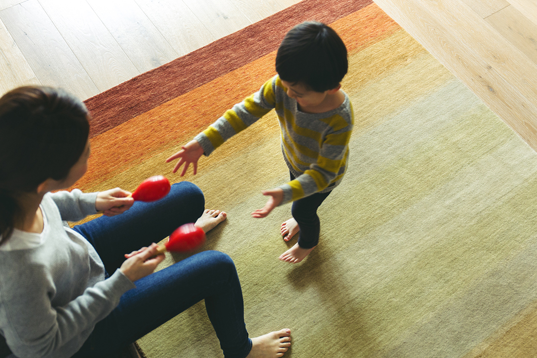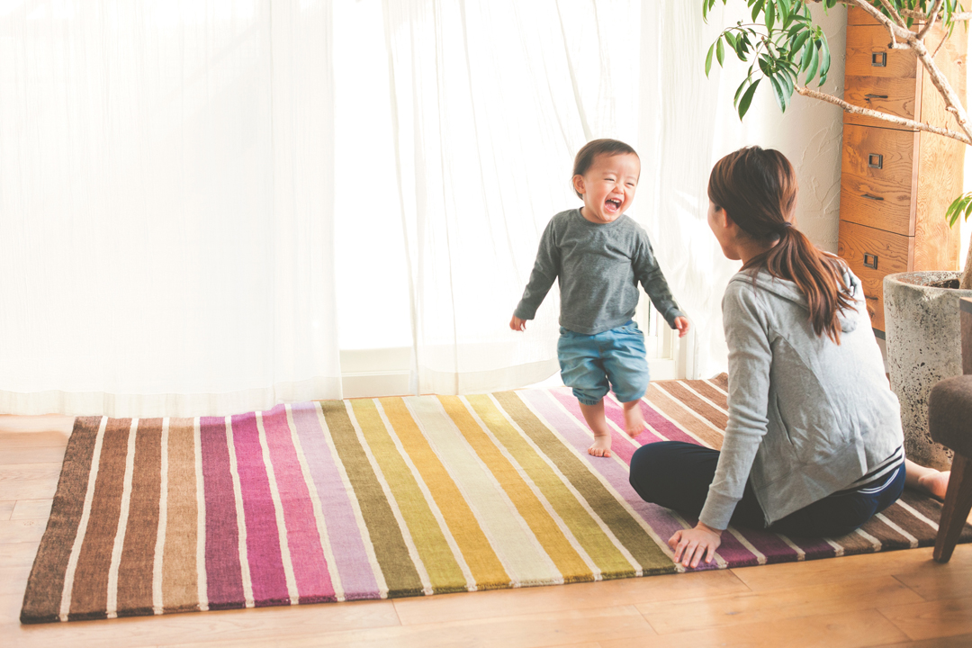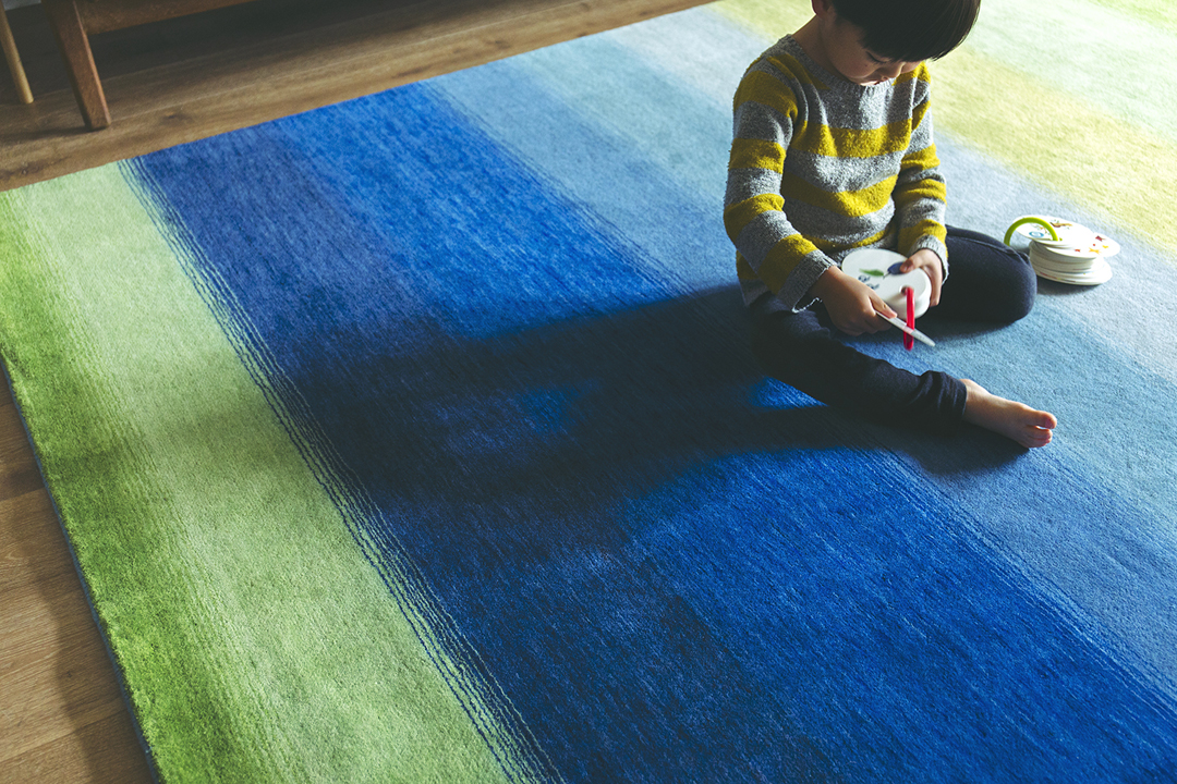 絨毯の場合、エコテックスの認証クラスは「classⅣ=クッションカバー、カーテン、ラグなどのホームファニシング製品レベル」であれば十分安全性が認められますが、ハグみじゅうたんはさらに厳しい規制値であるclassⅡ=肌着レベル」を取得。海外の土足で暮らす習慣とは異なり、日本のように床座での暮らしでは絨毯が直接肌に触れます。アレルギーの原因となる化合物を極力使用せず安心してお使いいただけるよう、安全面には特にこだわっています。