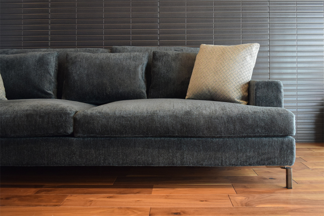 光沢感のあるファブリックを纏ったソファGRVA納品事例