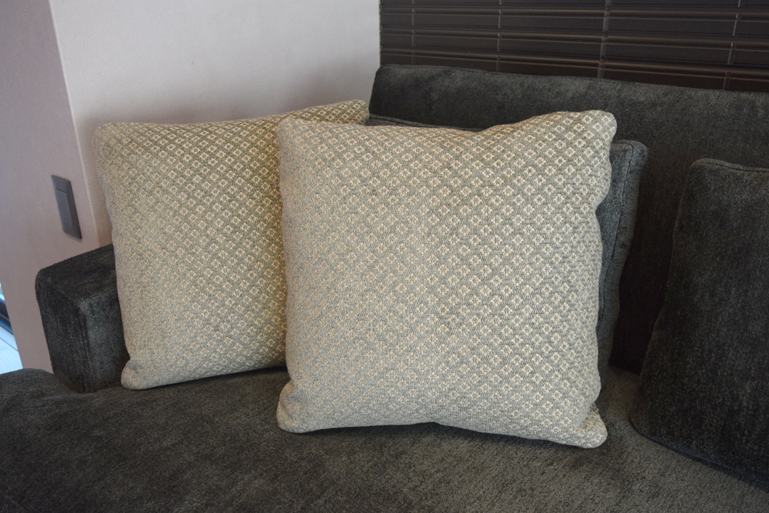 あると便利な45角のフェザークッションも2個お選びいただきました。