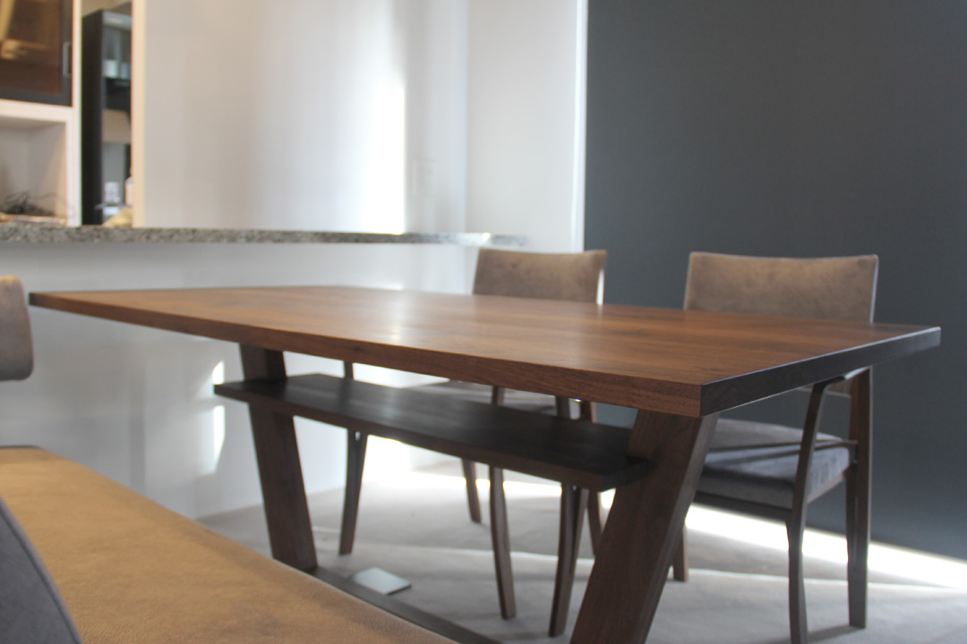 外側に脚がなく中央にあるので出入りしやすい事、テーブル下に棚がある事を気に入って頂きましたが、やはりデザインをとても気に入って頂きました。