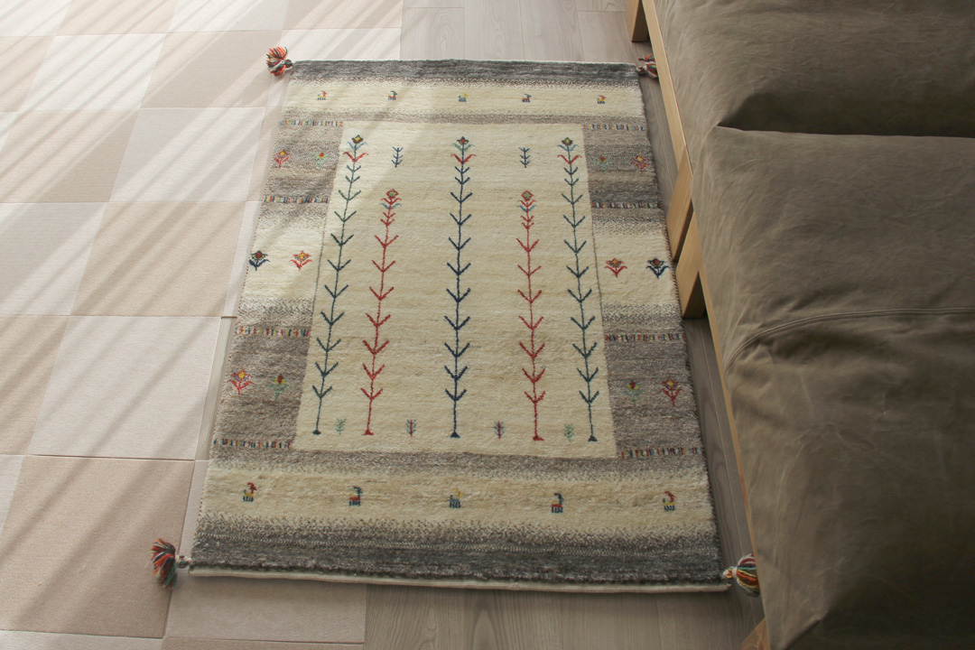 ご来店して頂いた時に弊店がギャッベフェアを開催しておりまして、原毛のナチュラルなギャッベも一目惚れされてご購入して頂きました。