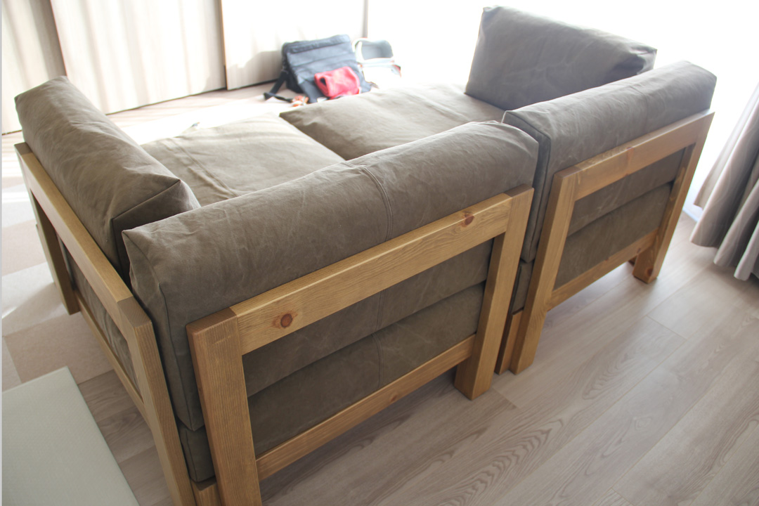 奥行きが1120mmあるので座って脚を伸ばして寛げるところや、幅は2台合わせて約1700mmでコンパクトなサイズ感をとても気に入って頂きました。