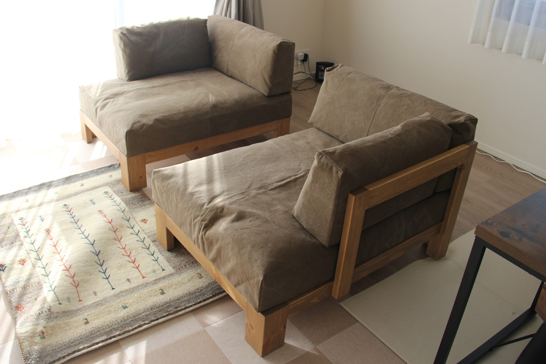 時には離して使用したり、合わせて使用したり、横並びにすると2240mmのソファにもなり様々なシーンで模様替えして頂けます。
