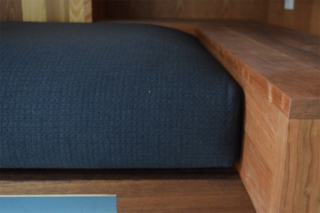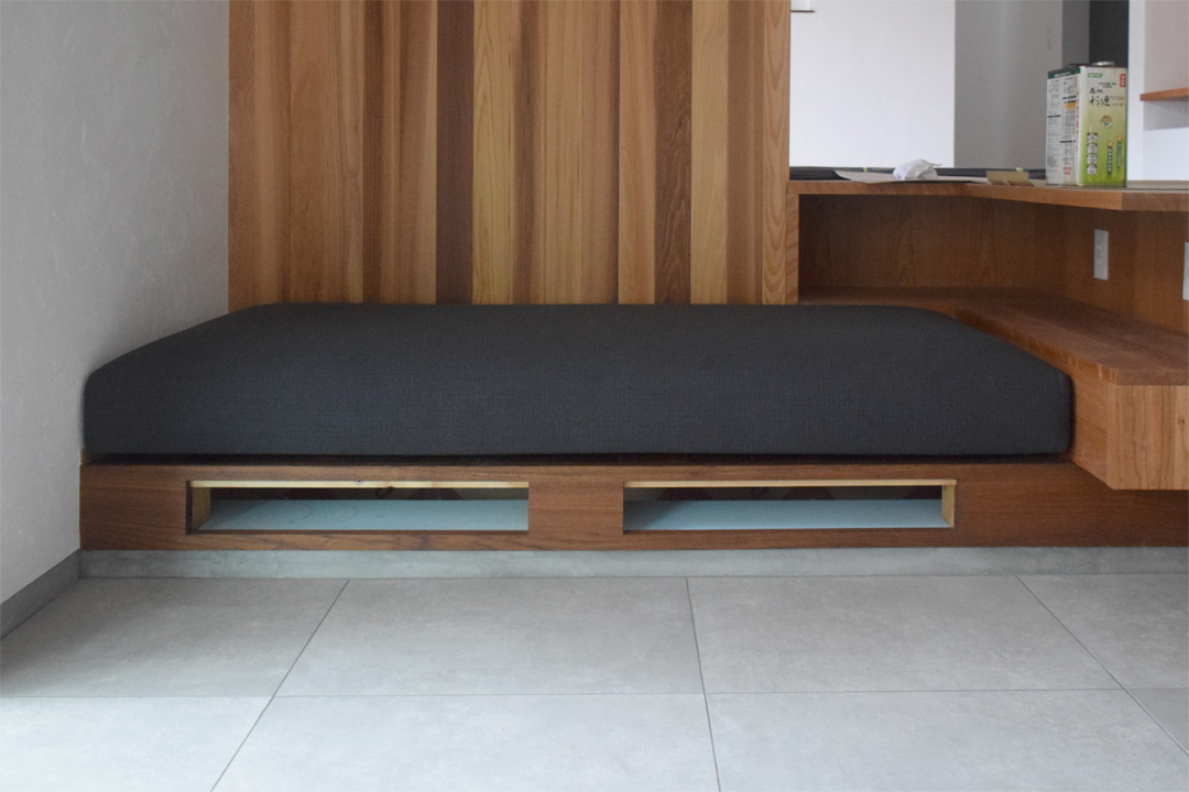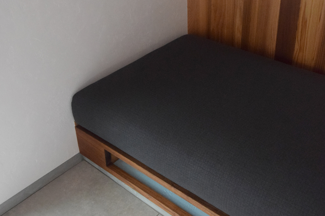 G様邸はこだわりの注文住宅を手掛ける「阿部建設株式会社様」からのご依頼で造作ソファの座クッションを納めさせていただきました。G様は阿部建設株式会社様の大工さんということもあり、自宅を自分自身の手で建てられたそうです。