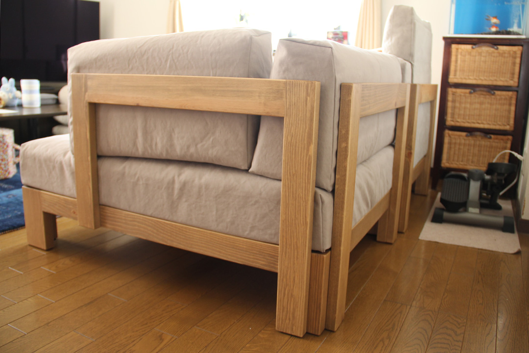 お選び頂いたのは幅85cm奥行き112cmとコンパクトな広松木工のSTABILEカウチソファをレフトとライトで合わせて2台。