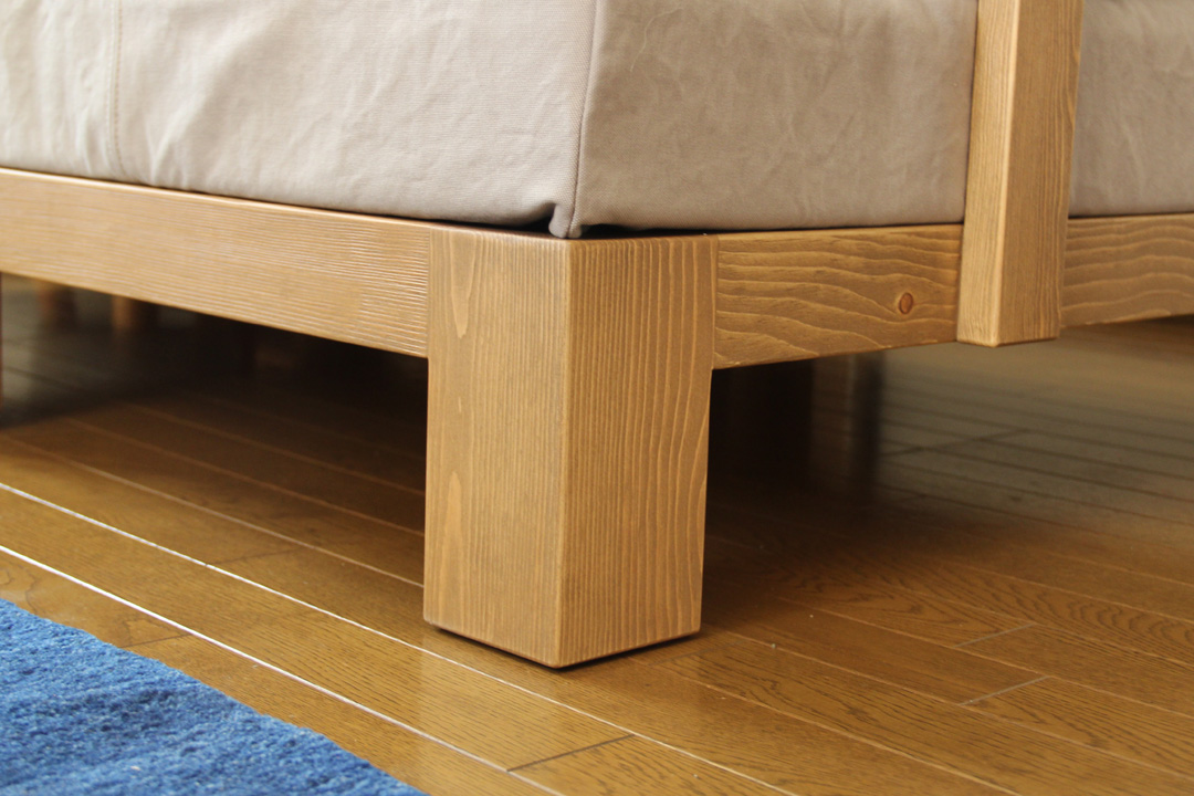 シャープで線の細いウッドフレームですので本体の大きさの割に座る面積が広いのが特徴です。