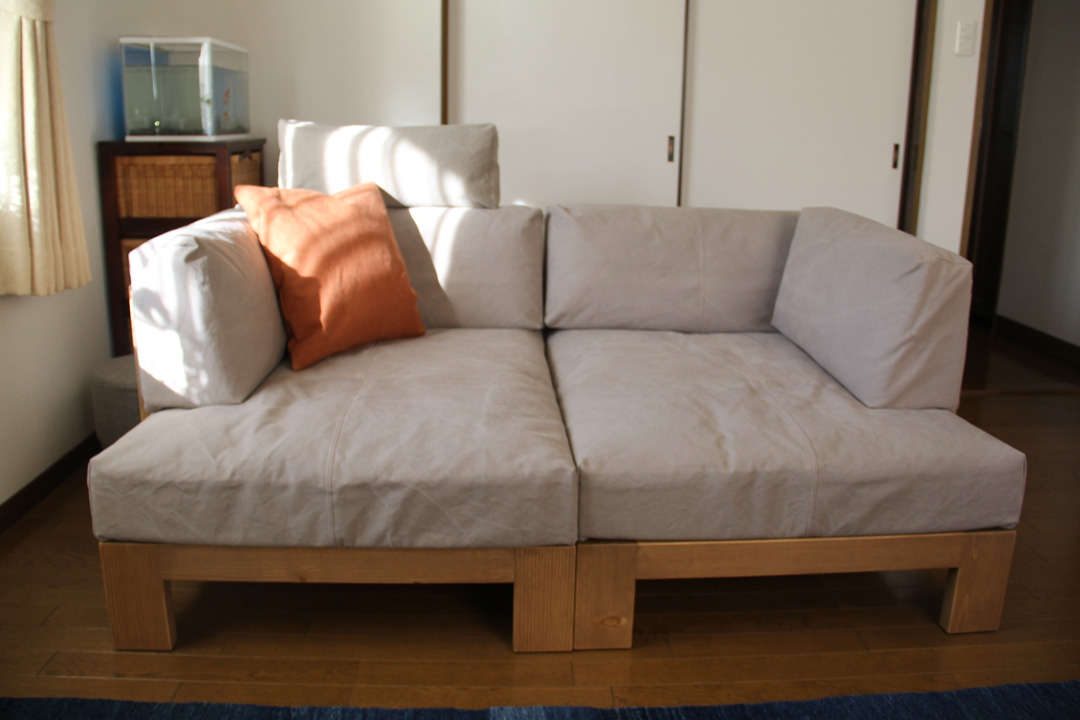 ソファを横並びに配置することにより幅2m24cmのソファになります。