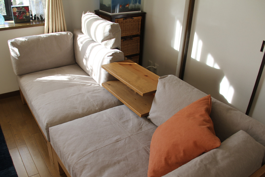 前に置いて良し、サイドに置いて良し、サイドテーブルは万能なアイテムです。