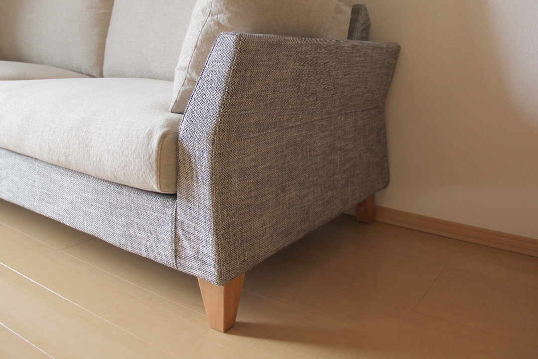 トレスソファはすべてイタリア製のファブリックを使用しており、約500種類からお選び頂け、フルカバーリングのためクリーニング(ドライ)ができ、将来的に張り替える手間がなく替えカバーの購入だけで済むのも魅力のひとつです。