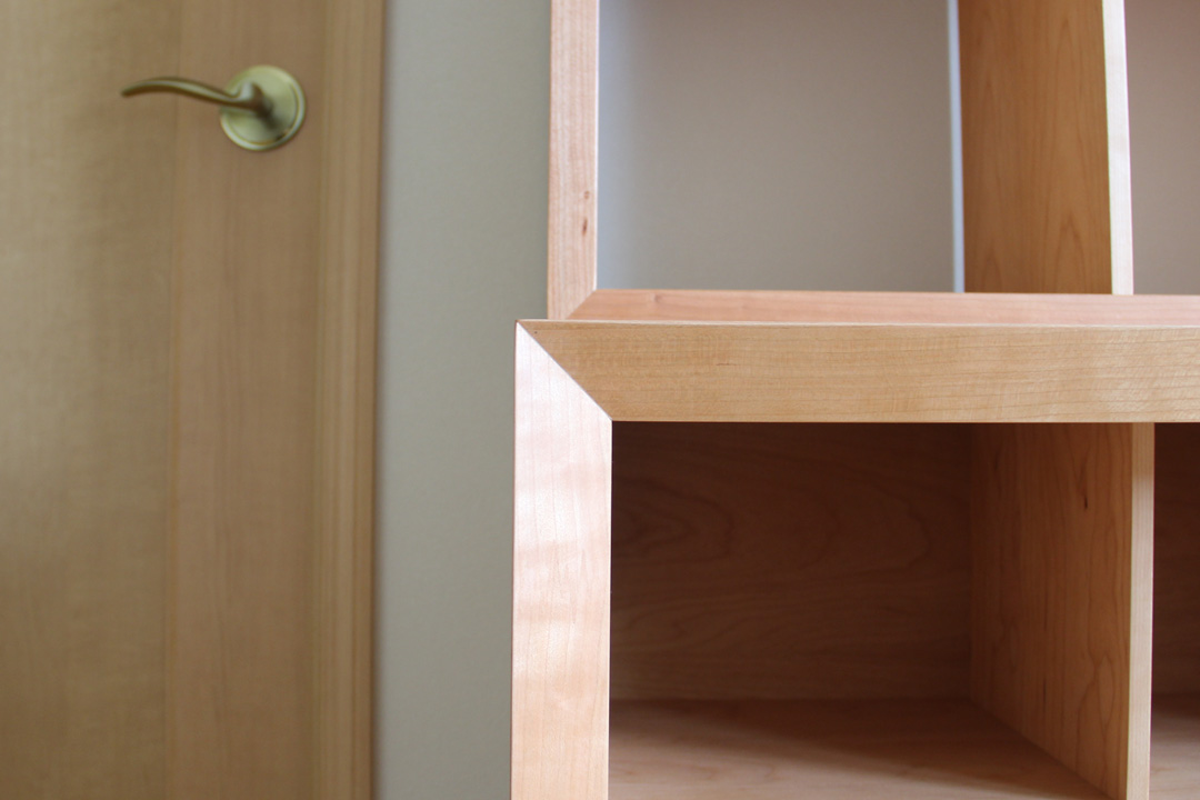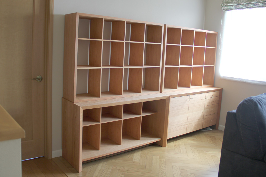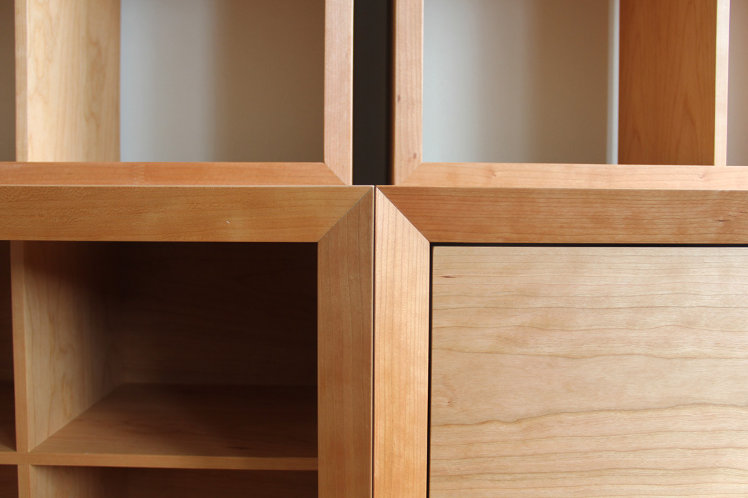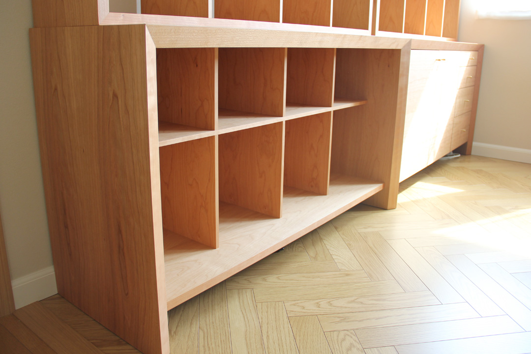 素材はオーク材とブラックチェリー材と迷われましたが、オーク材のフローリングと同化させないよう徐々に濃くなる経年変化に優れたブラックチェリー材に決定。