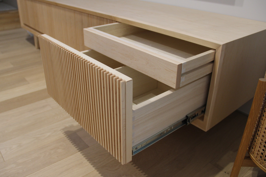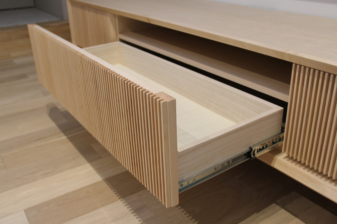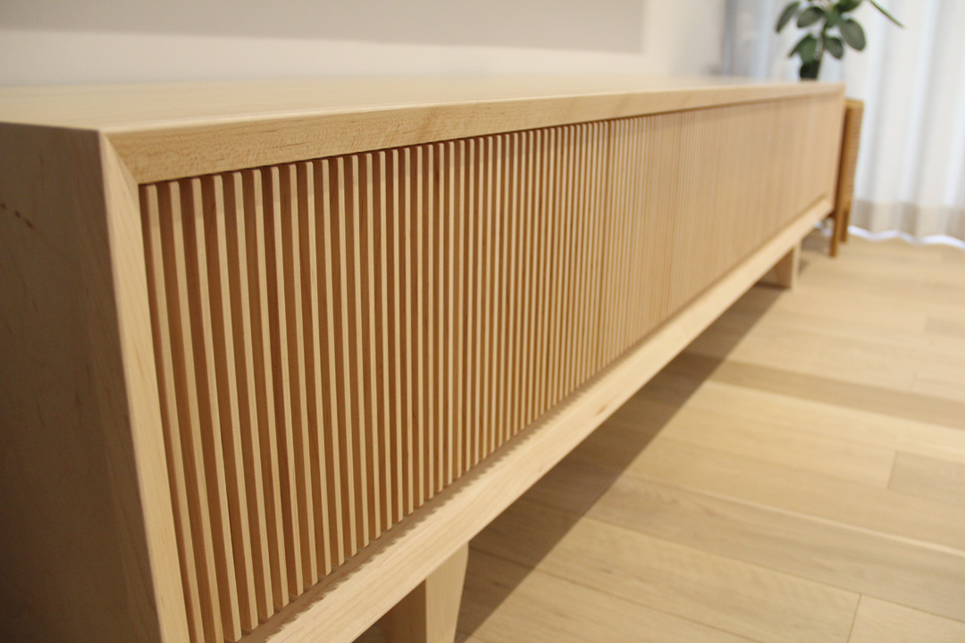 メープル材にてオリジナルテレビボードお届け