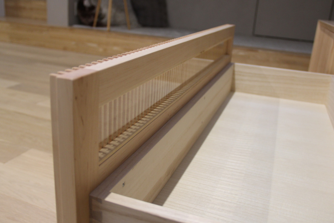 引出の内部は桐材で接合は【蟻組み】で職人が施す伝統的な技法で、とても頑丈に作られております。
