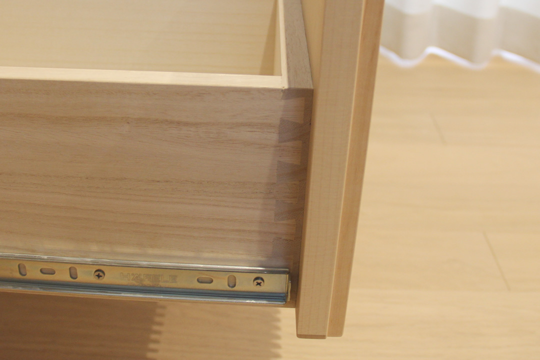 このような細かい配慮ができるのもオーダーボードならではです。(両サイドの引き出しに採用してます)